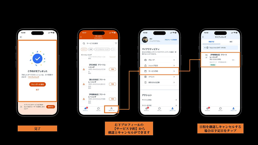 ⑤キャンセルする場合は右下「プロフィール」内の「サービス予約」を選択